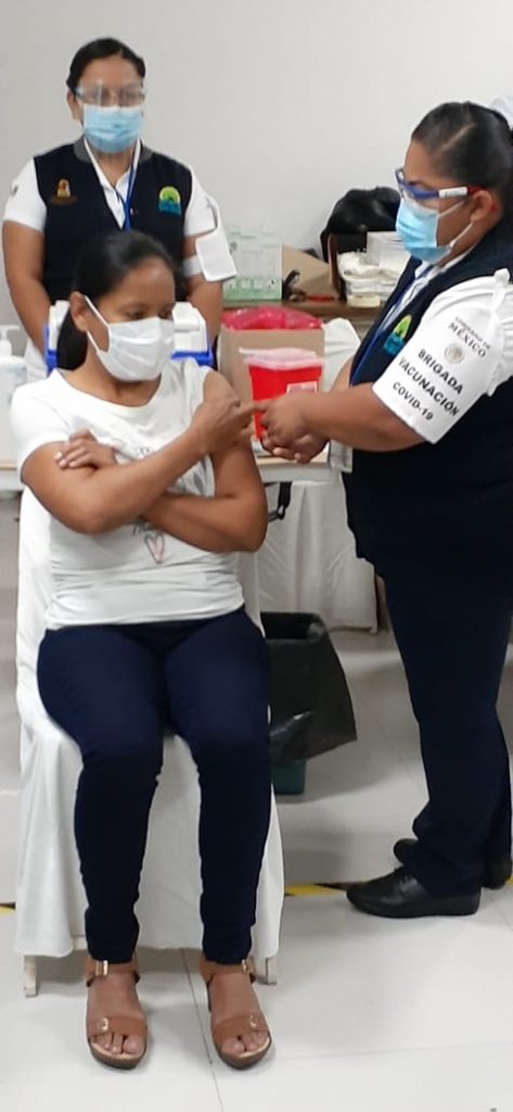 En el Hospital General de Chetumal, con la presencia del gobernador del Estado, Carlos Joaquín, la enfermera Juana Álvarez Carreón, fue la primera persona a la que se le aplicó la vacuna contra el COVID en Chetumal.