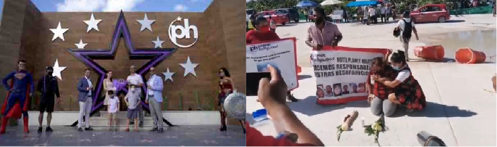 Cancún, Q. Roo, febrero 1 de 2021. Después de tres intentos de apertura (abril-octubre-diciembre/2020), este fin de semana se realizó la inauguración del Hotel Planet Hollywood, en la zona continental de Isla Mujeres, a pesar de las manifestaciones de familiares de trabajadores desaparecidos que participaron en la construcción del mismo.