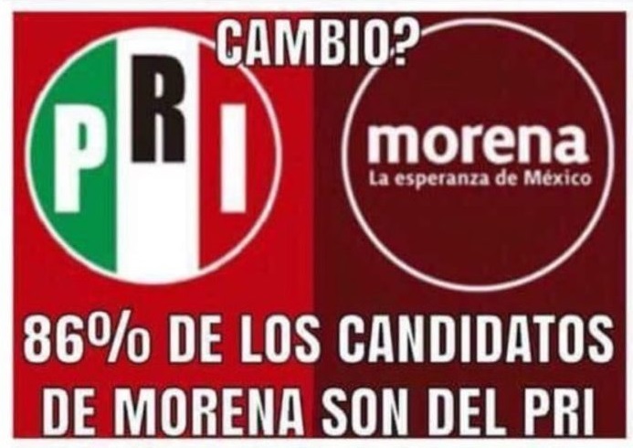 La llegada de priistas a las candidaturas de morena en 2018 generó infinidad de protestas internas, sin embargo, no lograron revertir la invasión de priistas tanto por la capacidad económica de los priistas refugiados como por la falta de experiencia y formación política y electoral de la mayoría de los militantes originales de morena, condición que fue determinante para que al interior del partido se formaran los clanes que Andrés Manuel López Obrador criticará del PRD y el artículo 3° de los estatutos de morena prohíben, mismo que ha sido violado sistemáticamente, tanto por los dirigentes, los militantes y los recién llegados del PRD, PRI y del PAN.