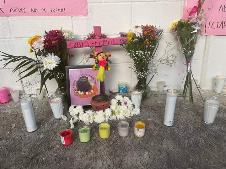 Las manifestantes armaron un altar al frente de la casa donde fue hallado el cuerpo la pequeña, instalaron cartulinas en las que expresan su indignación por los hechos.