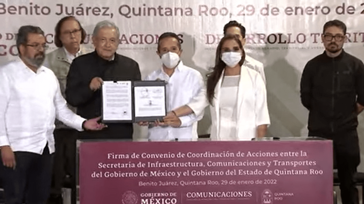 López Obrador mencionó que el Puente Nichupté, que tendrá más de 10 kilómetros sobre la laguna, no será de peaje, será de libre tránsito, ya que Cancún y Quintana Roo le han dado mucho a México, por lo que se destinarán recursos del presupuesto público, estatal y federal, por lo que los 10 mil millones de pesos de la obra no serán deuda. El evento concluyó con la firma del convenio de colaboración entre los Gobiernos Federal, Estatal y Municipal, representados por el Subsecretario de Infraestructura de la Secretaria de Comunicaciones y Transportes, Jorge Nuño Lara, Carlos Joaquín, Mara Lezama, respectivamente, por medio del cual se aseguraron los recursos para realizar las obras anunciadas por el Presidente Andrés Manuel López Obrador.