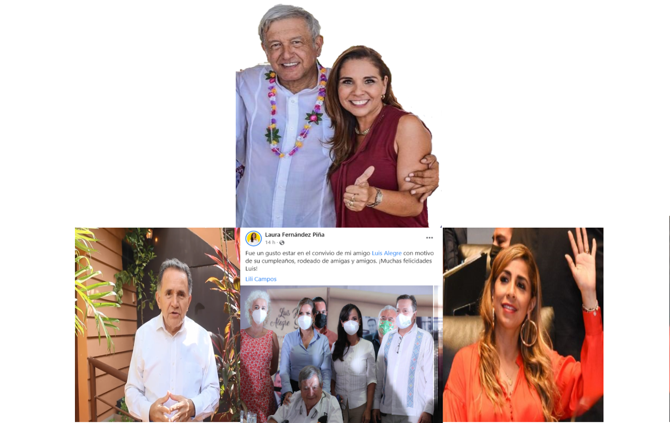 Mientras que José Luis Pech, quien fuera delegado de morena en Quintana Roo y se sirviera con la cuchara grande en 2018 despreciando a los militantes que lograron el registro de morena en Quintana Roo, salió a denunciar que le están haciendo lo que él hizo a diputados y regidores de morena elegidos en 2016, evidenciando que está en pláticas con los dirigentes de Movimiento Ciudadano para unirse al proyecto de su compañera de bancada, Marybel Villegas; Luis Alegre festejó su cumpleaños en compañía de la pre candidata del PRD, Laura Fernández Piña, con lo que se completan las muestras de la rebelión al interior del partido del presidente de la república y la 4T.