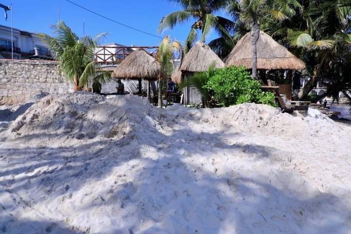 Campos Miranda, destacó que tras la degradación de la macro alga, se cierne la arena que suelta y que parte de esa arena recolectada ha sido de nueva cuenta vertida en el Recodo, permitiendo solventar la erosión del área que por su composición geológica, siempre será propenso al sargazo “La intención es recuperar arena cuando finalice el proceso de secado. Puntualmente, les iremos informando el destino final de lo que se logre recuperar”.