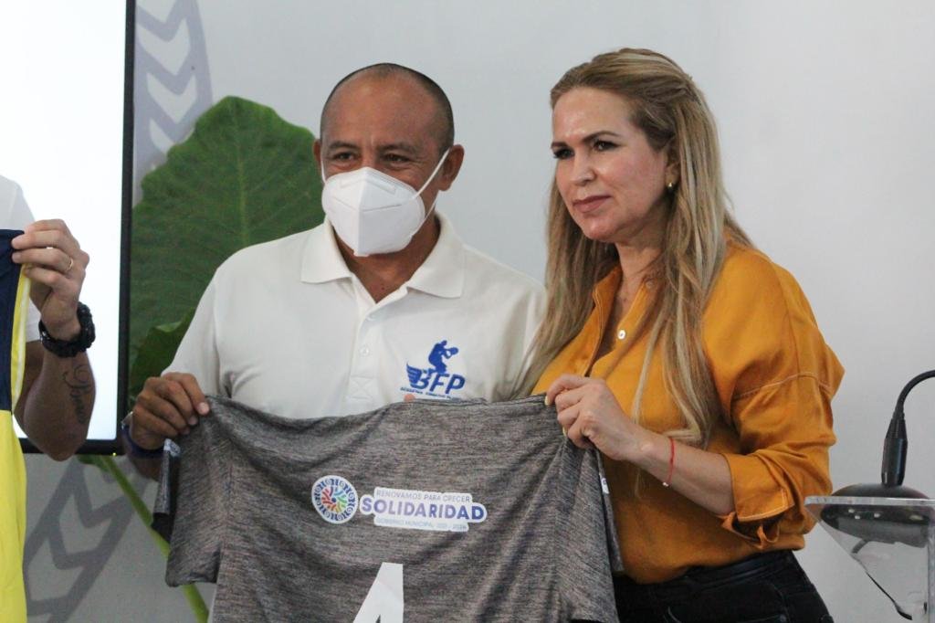 Las autoridades, acompañadas por el LEF Alejandro Tun, director deportivo del IDM, hicieron la entrega de manera simbólica de los uniformes y casacas a los equipos antes mencionados, recibió sus representantes lo antes mencionado: