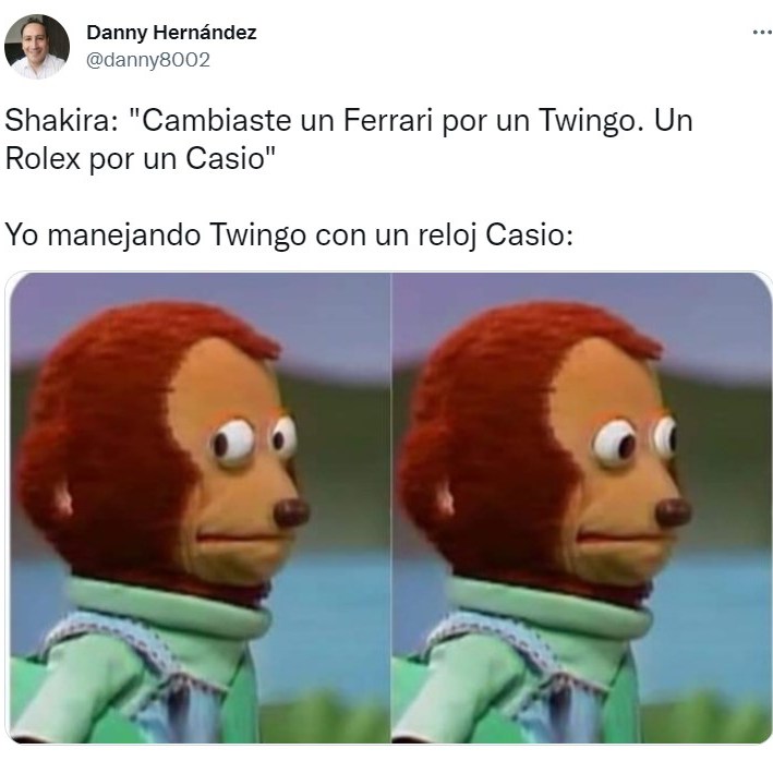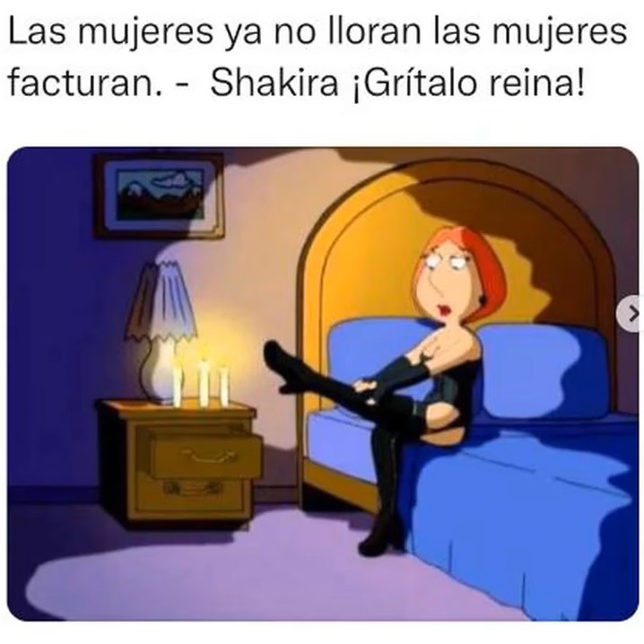 Los creativos creadores de los memes se dieron gusto presentando imágenes en las que apoyan a la cantante al mencionar algunas partes de la canción, comparando a la actual pareja de Piqué con algunos artículos como relojes y autos, así como una estrofa en la que le tira directo al futbolista “A ti te quedé grande, por eso estás con una igualita que tú” en referencia a la falta de honestidad del infiel.