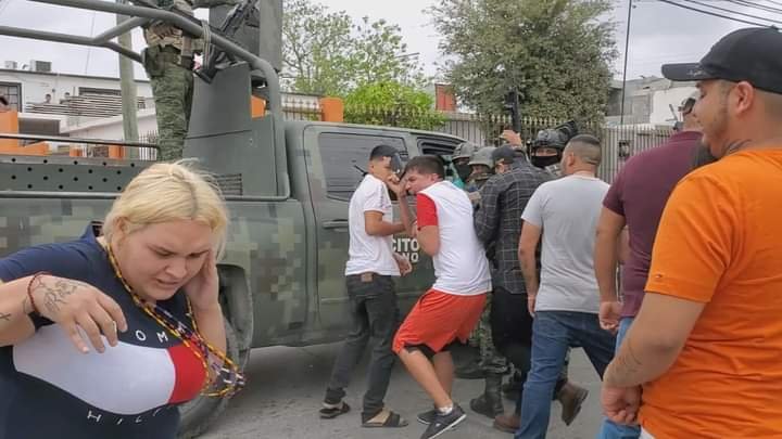 Nuevo Laredo, Tamaulipas, 26 de febrero de 2023.- Colonos de la Manuel Cavazos Lerma enardecidos por la ejecución extrajudicial de cinco jóvenes, protestaron ante elementos de la Secretaría de la Defensa Nacional en el lugar del crimen y en tres ocasiones los soldados dispararon, poniendo en peligro a la ciudadanía, reporteros y al defensor de Derechos Humanos, Raymundo Ramos Vázquez.