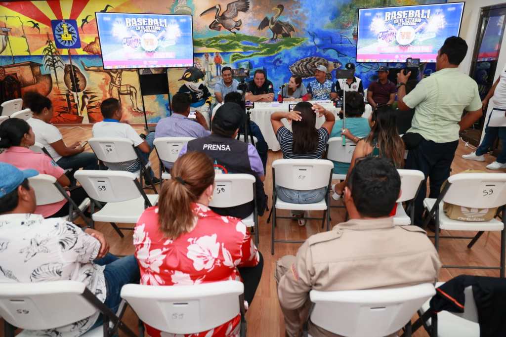 En la conferencia de prensa estuvieron presentes además, Alejando Medina Solís , coordinador deportivo del Club Los Tigres de Quintana Roo, la mascota del equipo, «Chacho»,