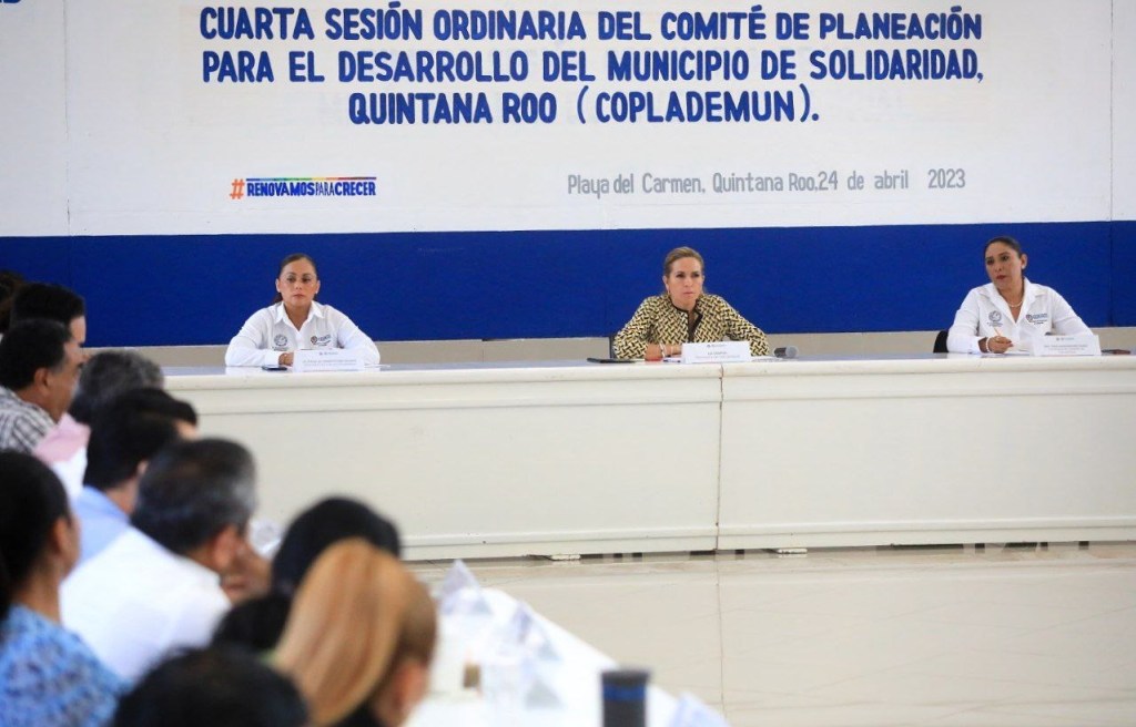 Playa del Carmen, Solidaridad, 24 de abril del 2023.- Con un total de 42 obras y 14 acciones en beneficio de la ciudadanía, propuestas por el gobierno que encabeza la presidenta Lili Campos, fue aprobado el proyecto de apertura del Programa Operativo Anual (POA) 2023, en la Cuarta sesión ordinaria del Comité de Planeación para el Desarrollo Municipal (COPLADEMUN).