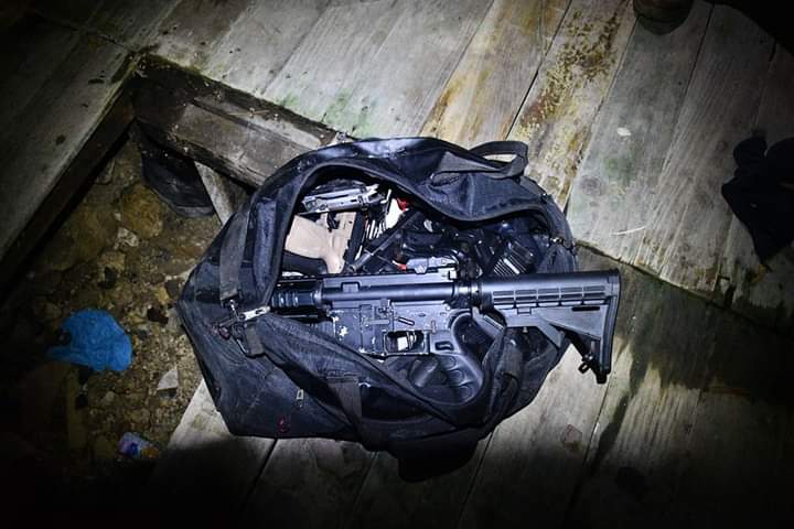 Durante la diligencia, elementos de la Policía de Investigación, aseguraron 17 armas cortas y un arma larga, 13 paquetes con polvo blanco similar a la cocaína y decenas de cartuchos útiles de diferentes calibres.