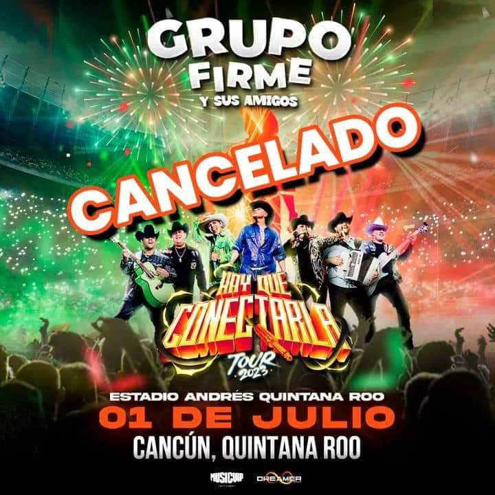 Por otra parte, también fue cancelado el concierto de Grupo Firme programado para el próximo 01 de julio en el estadio Andrés Quintana Roo.