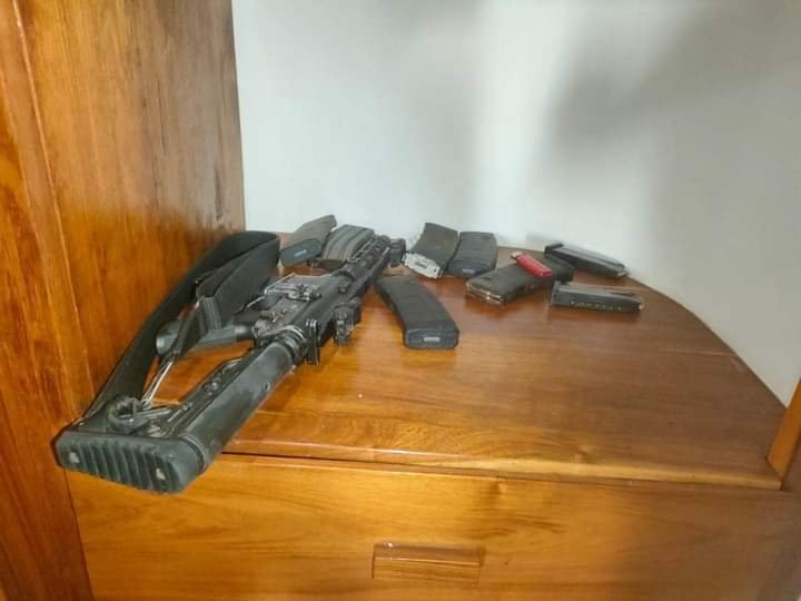 En el sitio se aseguraron dos vehículos, cuatro armas largas, dos pistolas, una granada de fragmentación y 23 cargadores.