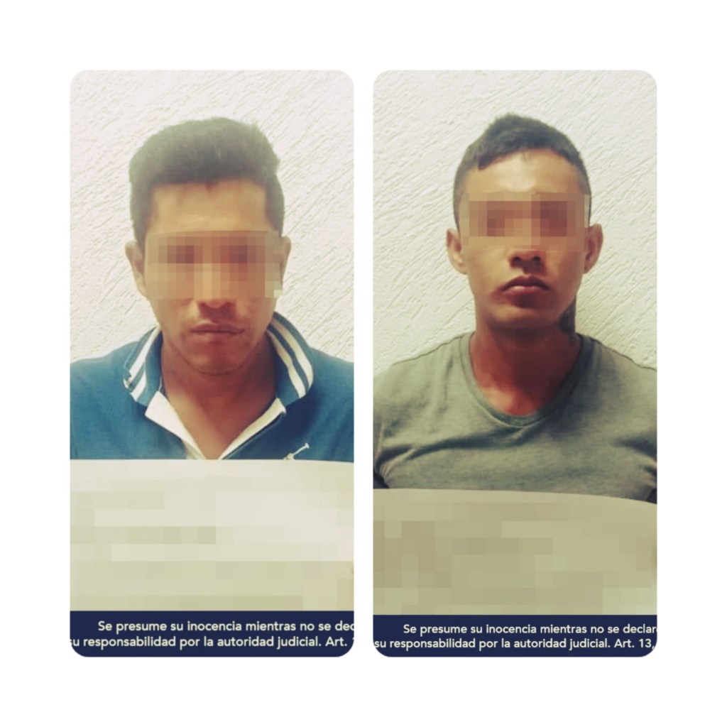 Los detenidos responden a los nombres de Eleazar «N» de 30 años de edad, originario de Veracruz y Abraham «N» de 25 años, procedente de la Ciudad de México, y el presunto delito es homicidio calificado y homicidio en grado tentativa.