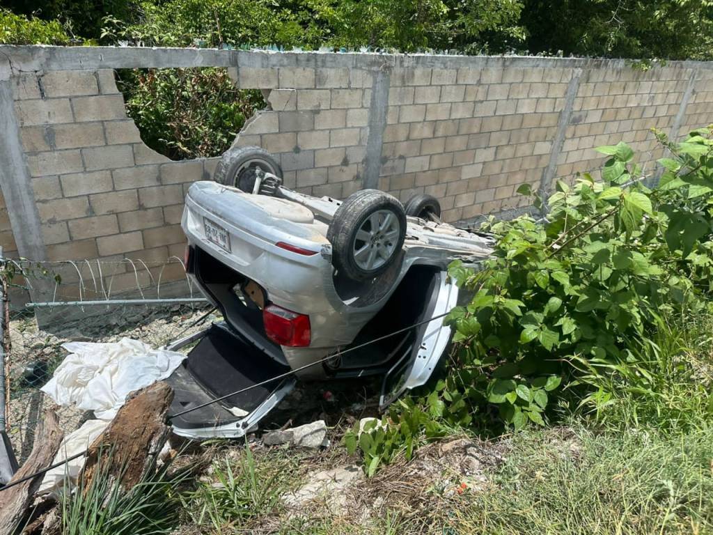 Playa del Carmen 24 de julio del 2023.- Aparatosa volcadura se registró sobre la carretera federal 307 cuando la conductora de una vehículo particular perdió el control al volante y volcó.