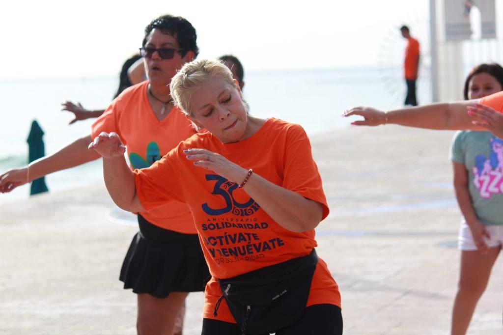 Playa del Carmen, Solidaridad, Q. Roo a 25 de agosto de 2023.- En conmemoración del Día Naranja, cientos de solidarenses se unieron para expresar el mensaje de unión y fuerza contra la violencia, en esta ocasión lo hicieron en domos, parques y playas del Municipio de Solidaridad, participando en sesiones de activación física acompañadas por música, en su mayoría quienes forman parte del programa Actívate y Renuévate por Solidaridad, que promueve la presidenta municipal Lili Campos y que ha beneficiado a las familias.