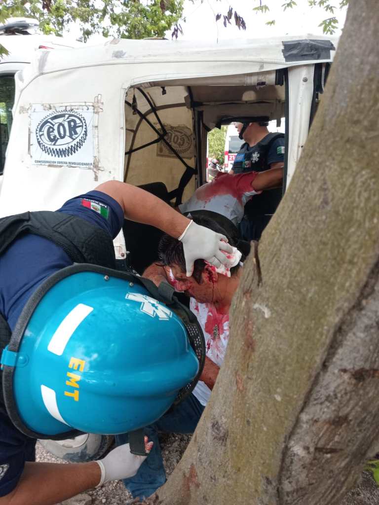 De manera inmediata se solicitaron dos ambulancias, por lo que llegaron paramédicos de bomberos que trasladaron a los lesionados al Hospital General de Playa del Carmen.