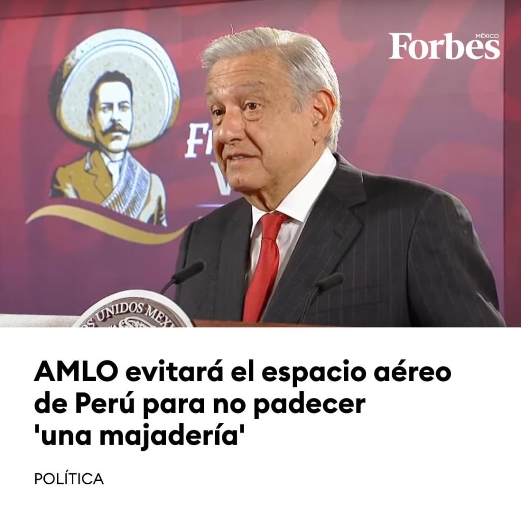 El presidente mexicano, Andrés Manuel López Obrador, reveló este miércoles que evitará sobrevolar el espacio aéreo de Perú para no padecer «una majadería» durante su gira por Sudamérica, que inicia este viernes en Colombia y también contempla Chile.