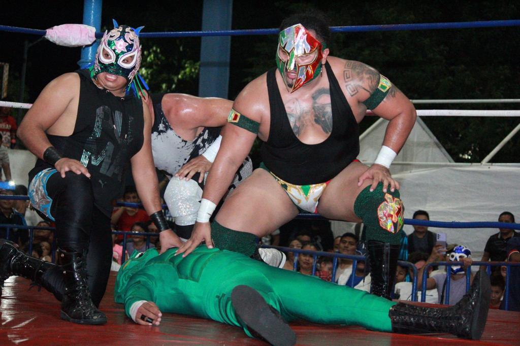Mientras que en la lucha con la que inició este cartelera de festejos patrios en Solidaridad, se dio una batalla mixta también a una sola caída, en donde la pareja femenil de Princesa Maya y Xunan, le ganaron a la Mujer Salvaje Jr. y Black Boy, en un combate que además de Dark Palomo, también contó con el Tamalero como referees.