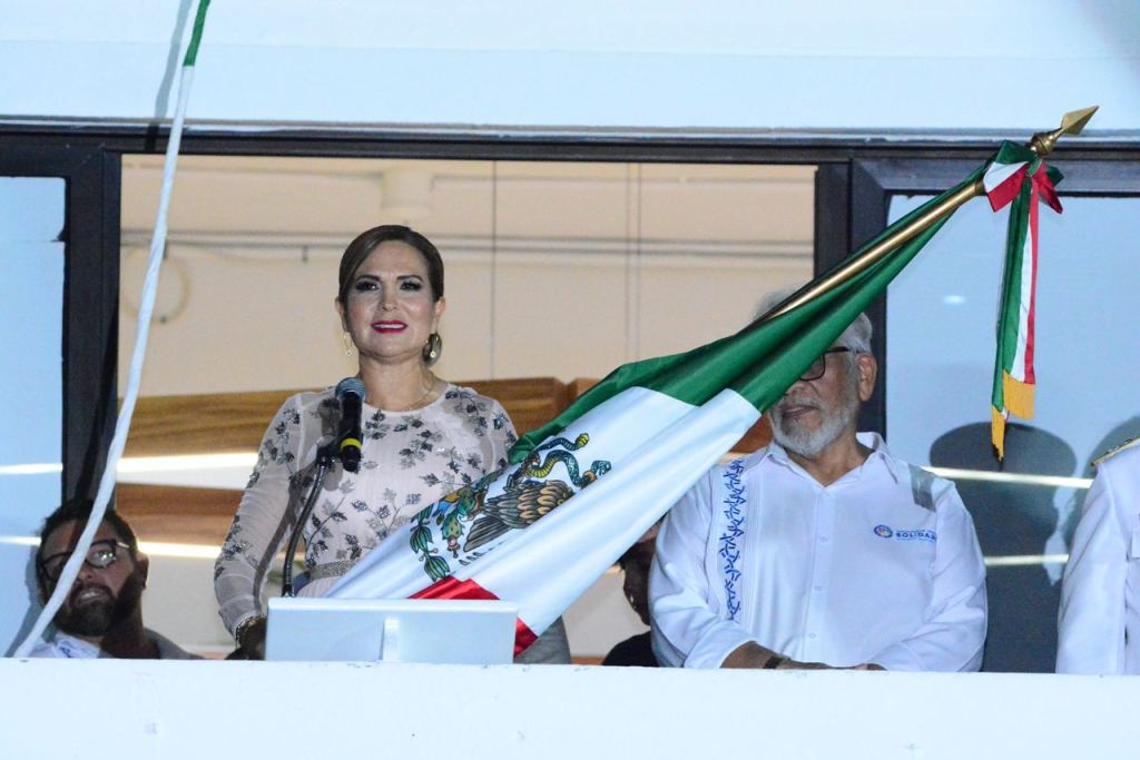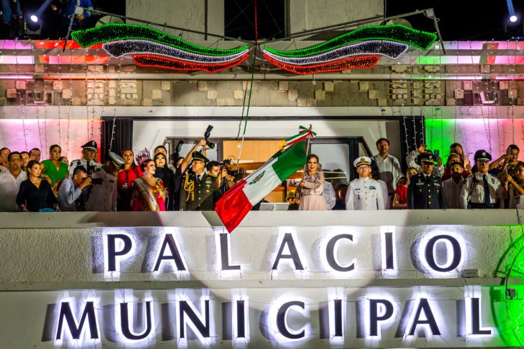 Playa del Carmen, Solidaridad, 15 de septiembre del 2023.- Ante una multitud de 20 mil habitantes mexicanos y amigos de otras nacionalidades, la presidenta Lili Campos dio el tradicional Grito de Independencia desde el palco del Palacio Municipal de la Plaza 28 de Julio, donde ondeó con orgullo la bandera de México mientras hacía resonar el repique de la campana.