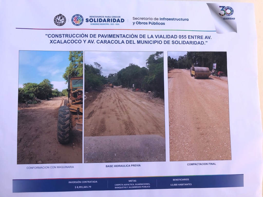 El director de obra de la Secretaria de Infraestructura y Obra Pública Javier Castillo explicó que, esta calle 055 tiene 360 metros lineales, será una conexión entre la avenida Xcalacoco y la Caracola. El proyecto incluye conformación de terracería, carpeta asfáltica de 5 centímetros de espesor, banquetas y alumbrado público. Se pretende que la obra termine a finales de noviembre.