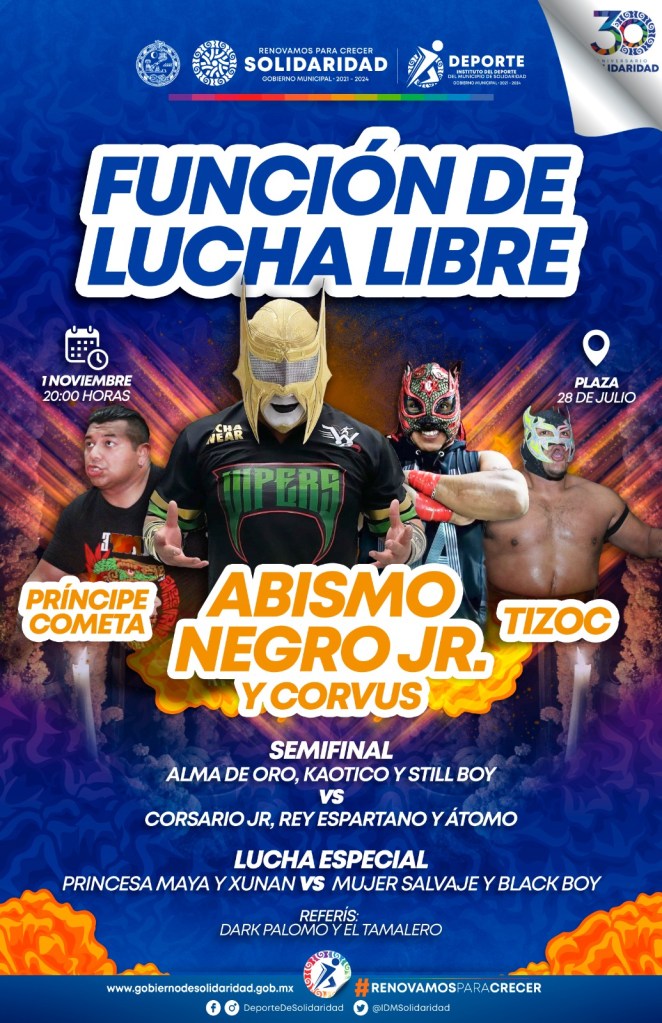 La noche del miércoles 1o de noviembre, la plaza 28 de julio se convertirá en una arena especial, ya que en medio de los altares que se instalarán habrá un ring en el que Abismo Negro Jr, actual campeón mundial de parejas mixto y de tercias de la Triple AAA, y quien debutará en la empresa el 8 de septiembre de 2019, en su segunda etapa, hoy en día es uno de los luchadores más temidos y estará haciendo pareja con Corvus para enfrentar a uno de los rudos más temidos del sureste: Tizoc, quien hará pareja con Príncipe Cometa, el príncipe del aire y las acrobacias, ellos estelarizarán la lucha estelar.