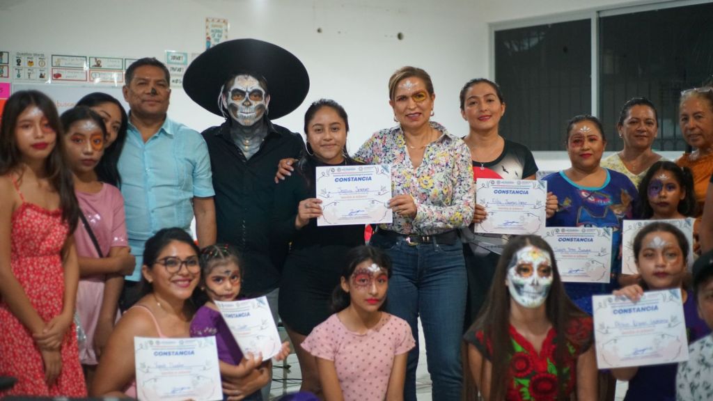 Solidaridad, Puerto Aventuras, 11 de noviembre de 2023 – El Curso de maquillaje de Halloween y Día de Muertos, fue un éxito gracias al impulso y compromiso de la presidenta Lili Campos en colaboración con el Instituto de la Juventud en beneficio de la juventud de Puerto Aventuras.
