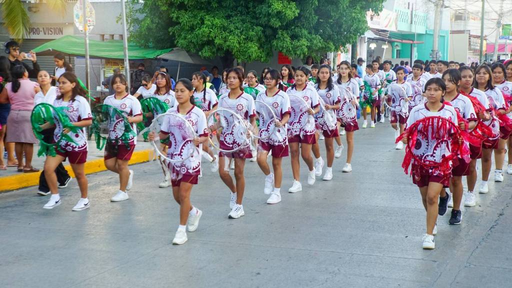 Esta expresión vibrante de unidad y patriotismo inició sobre la Avenida 34 integrada por 60 contingentes, concluyendo cuatro horas después. Estuvo encabezado por Vigilantes Escolares, pertenecientes a la Secretaría de Seguridad Pública. Posteriormente entusiasta alumnos de los tres niveles educativos, personal de secretarías del Ayuntamiento, asociaciones civiles y clubes deportivos realizaron bailes y cantos como “La Adelita”, rutinas rítmicas como “bastoneras”, pirámides, incluyendo demostraciones de bandas de guerra, habilidades en deportes, entre otras presentaciones.