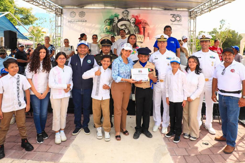 La presidenta Lili Campos expresó su agradecimiento por la realización del hermoso desfile conmemorativo, destacando la participación del Ejército y la Marina, así como la presencia del gremio taxista; reconoció la participación activa del Cabildo Infantil y, además, subrayó la importancia de fortalecer los eventos cívicos que reflejan el amor a la patria, recordando la importancia de la historia, las tradiciones. Concluyó expresando el orgullo de ser solidarense y trabajar en este gobierno por Solidaridad.