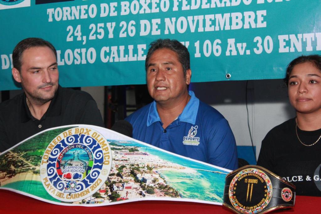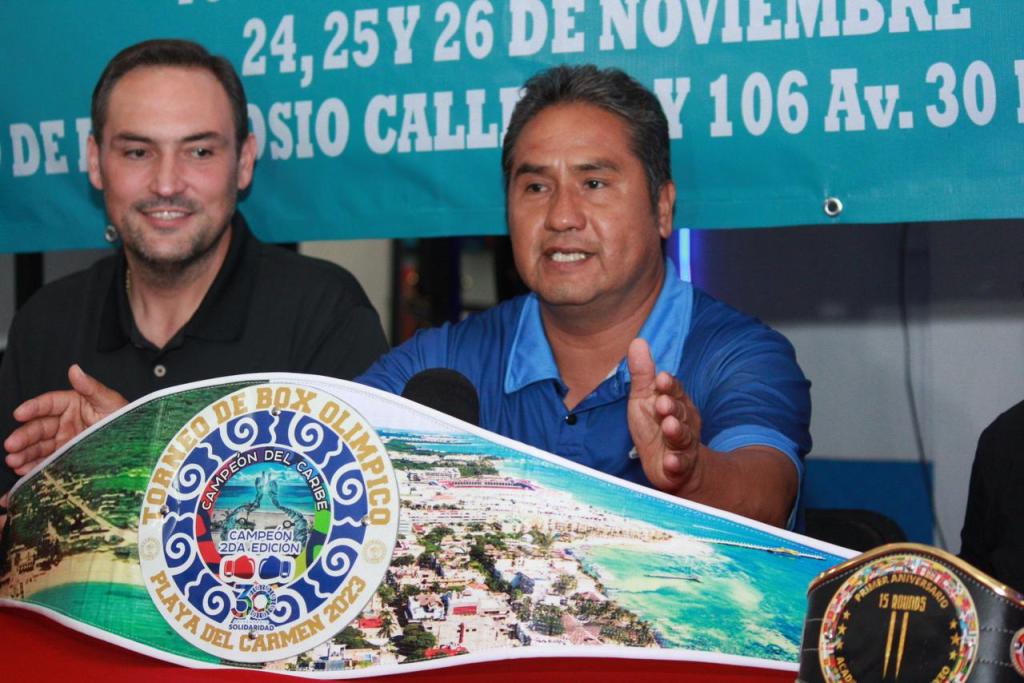 Playa del Carmen, Solidaridad, Q. Roo a 21 de noviembre de 2023.- Uno de los eventos más esperados por niños y jóvenes boxeadores fue presentado en rueda de prensa, la segunda edición del Torneo de Box Olímpico “Campeón del Caribe”, que convocará a más de 250 boxeadores infantiles y juveniles de la región, y que se realizará del 24 al 26 de noviembre del presente año en el gimnasio de usos múltiples de la unidad deportiva Colosio, y en el que los ganadores por categoría se harán acreedores a un cinturón de edición especial.