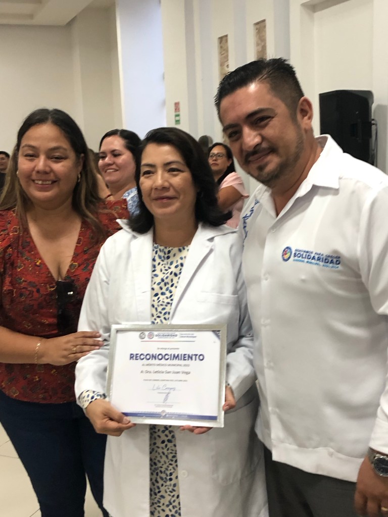 Al iniciar la sesión de Cabildo fue entregado el reconocimiento al Mérito Médico 2023. Esta es la primera vez que una administración pública la realiza, pues los médicos garantizan la protección de la salud de las y los solidarenses. Es por ello que la ganadora fue la doctora Patricia Aurelio Castillo. Al mismo tiempo, se entregaron reconocimientos a los médicos Leticia San Juan, Segundo Yepes, Leonardo Llamas Ramos, Leonardo Llamas López y José David Domínguez Segura.