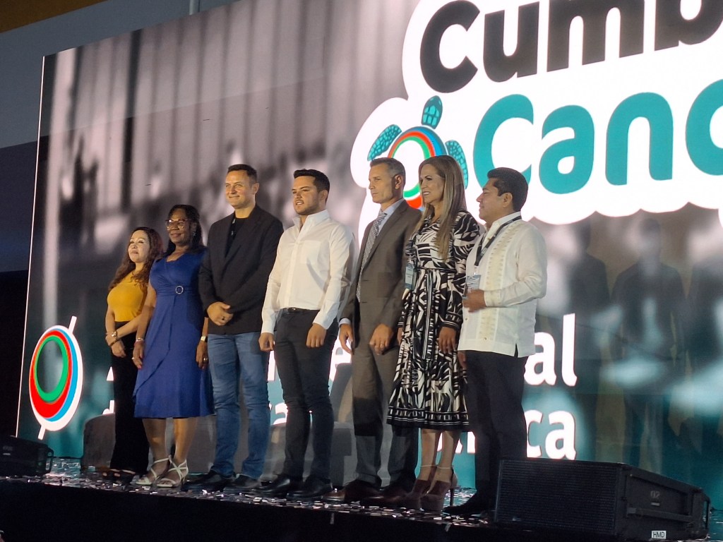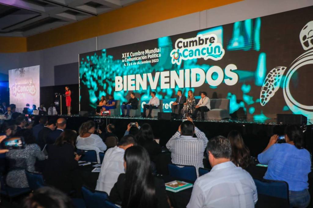 Cancún, Quintana Roo, 4 de diciembre del 2023.- La presidenta municipal de Solidaridad, Lili Campos, fue invitada de honor en la inauguración de la XIX Cumbre Mundial de Comunicación Política que se realiza en Cancún, y en donde el miércoles 6 de diciembre tendrá participación con una ponencia.