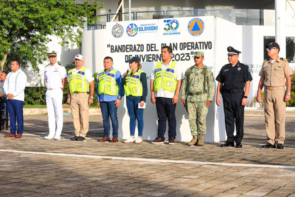 Playa del Carmen, Solidaridad, 11 de diciembre del 2023.- Con el banderazo de salida de unidades policiacas y de emergencia, el gobierno municipal encabezado por la presidenta Lili Campos, puso en marcha el “Plan Operativo Invierno 2023” para resguardar la integridad física de visitantes y solidarenses, en el que participan más de mil policías preventivos, 170 elementos de Protección Civil, personal del DIF, grupos de emergencias, cuerpos de paramédicos, la colaboración de la Sedena, Marina, Guardia Nacional y autoridades estatales.