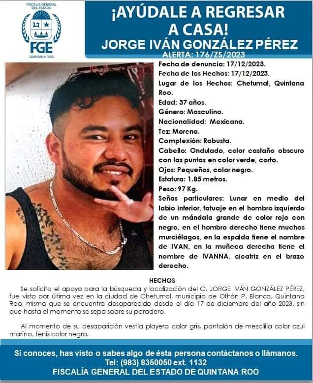 Horas después, la Fiscalía General del Estado emitió una ficha de desaparición para Jorge Iván González Pérez, proporcionando detalles sobre señas particulares, como un lunar en el labio inferior, tatuajes en hombros y espalda, y cicatrices en el brazo derecho. El taxista vestía una playera gris, pantalón de mezclilla azul marino y tenis negros en el momento del ‘levantón’.