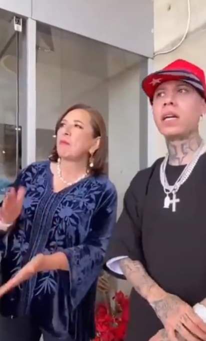 A través de sus redes sociales, Gálvez Ruiz subió un video del encuentro que sostuvo con el intérprete del género urbano, quien agradeció el apoyo de la panista manifestándole «Qué chido que apoya al barrio, jefa».