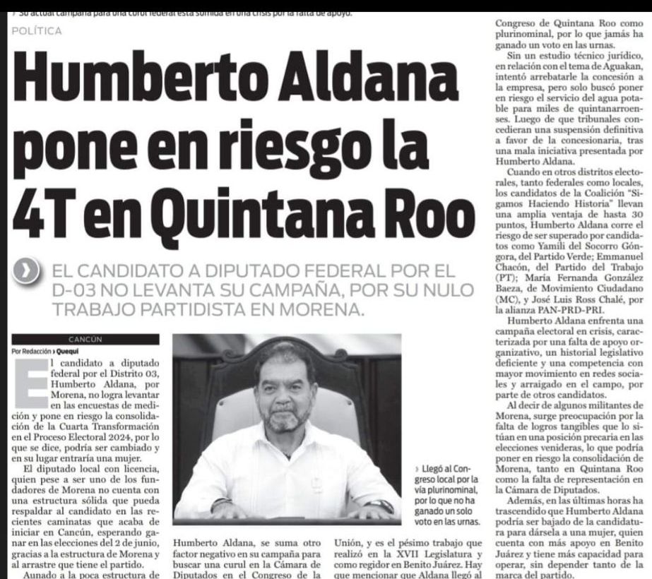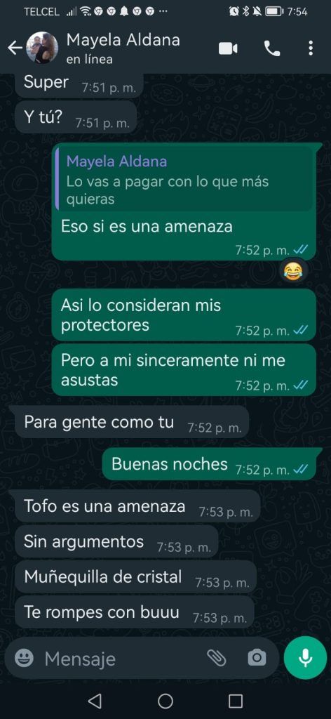En el mes de septiembre de 2023 la reportera Sandy González Rodríguez, en busca de una nota sobre la iniciativa sobre protección a las mujeres que presumió el diputado Humberto Aldana, fue objeto del desprecio, agresión y humillación por parte de Mayela Sánchez, asistente personal del diputado de morena, quien, en mensaje de texto le dijo que era una estúpida creyendo que “una pinche reportera que no es nada se pone al tu por tu con el segundo poder del estado, solo un ser inconsciente hace eso” (SIC).