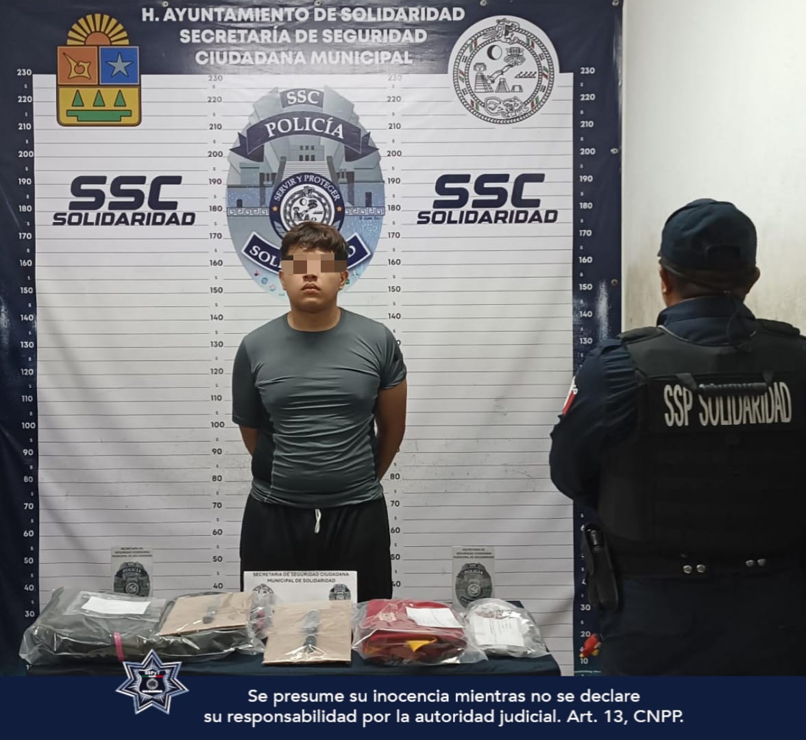 Durante el operativo de búsqueda de una persona relacionada con diversos robos a comercio, la Policía Municipal de Solidaridad aseguró a un sujeto en el fraccionamiento Villas del Sol.