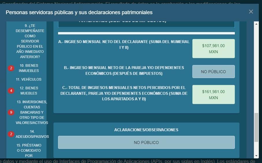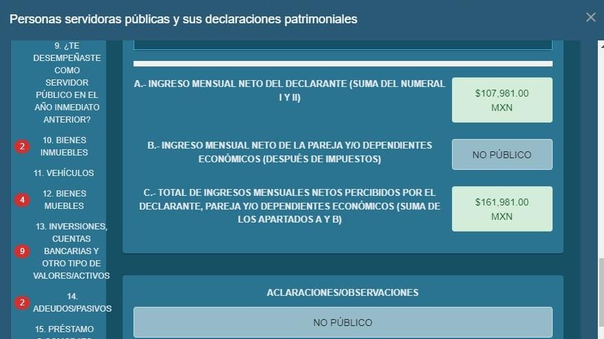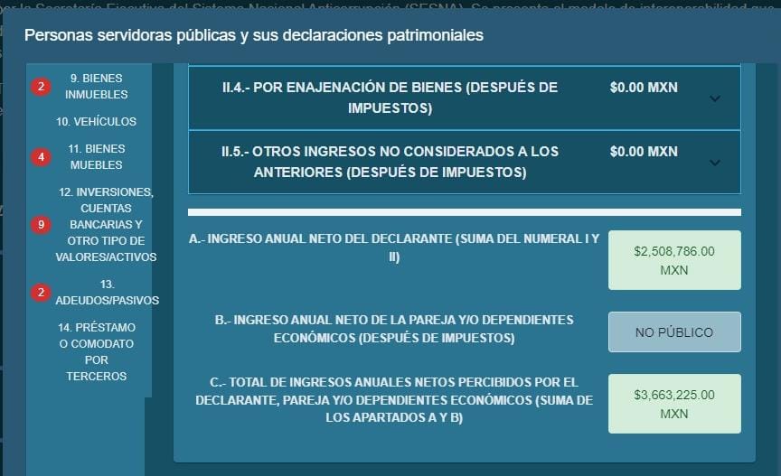 No sólo esto, de acuerdo a su declaración patrimonial, el total de ingresos anuales netos percibidos es de 3 millones 663 mil 225 pues de acuerdo a lo que aparece en su declaración por actividad financiera, es decir rendimientos o ganancias después de impuestos, ahora tiene ingresos por 480mil 652 que antes no percibía.