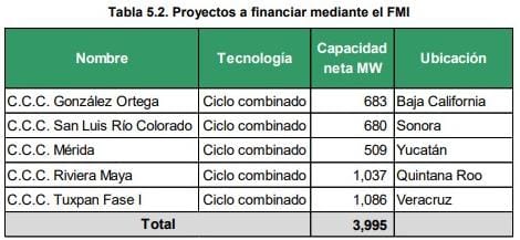 Según este Plan, la tecnología de ciclo combinado tendría una capacidad neta de 1 mil 037 megawatts y se financiaría mediante un fideicomiso maestro de inversión, como se puede leer en dicho programa de inversiones.