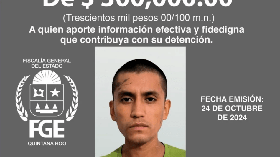 De acuerdo con el Acuerdo Específico 11/2024, emitido el 24 de octubre, se solicita la colaboración ciudadana para lograr la pronta detención de Gilberto Guzmán de Díos, quien, tras su captura el pasado 11 de octubre, escapó de la cárcel municipal de Cancún el 20 de octubre.