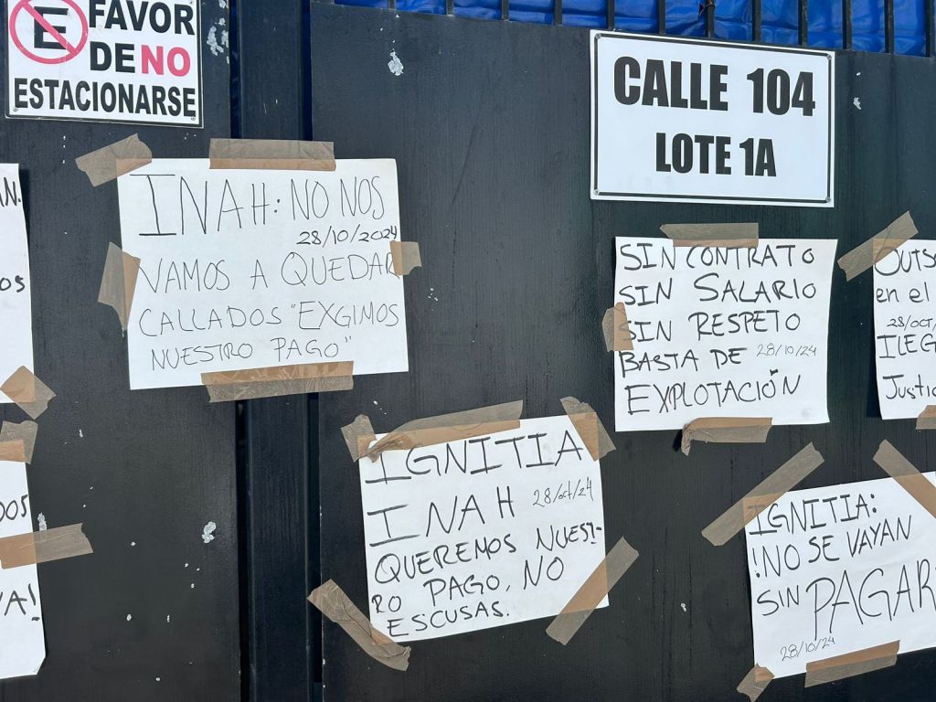 En una situación de incertidumbre y malestar, trabajadores de la empresa Ignitia, subcontratada por el Instituto Nacional de Antropología e Historia (INAH) para la restauración de zonas arqueológicas en el tramo cinco del Tren Maya, se manifestaron este lunes en Playa del Carmen. Los empleados denuncian que la empresa ha anunciado su quiebra, dejándolos sin el pago de dos quincenas pendientes.