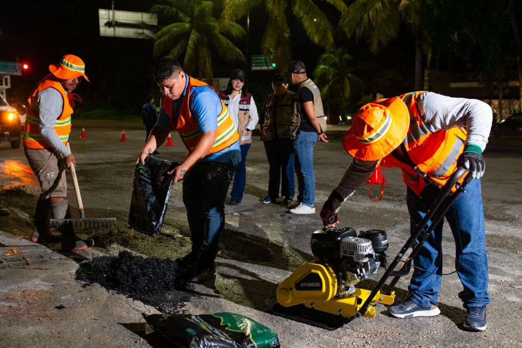 Playa del Carmen, Quintana Roo, 31 de octubre de 2024.- Con el objetivo de afrontar un rezago de tres años en materia de bacheo en esta ciudad, la presidenta municipal de Solidaridad, Estefanía Mercado, puso en marcha durante la madrugada de este jueves, un plan para reforzar los trabajos que lleva a cabo el personal de Servicios Públicos.