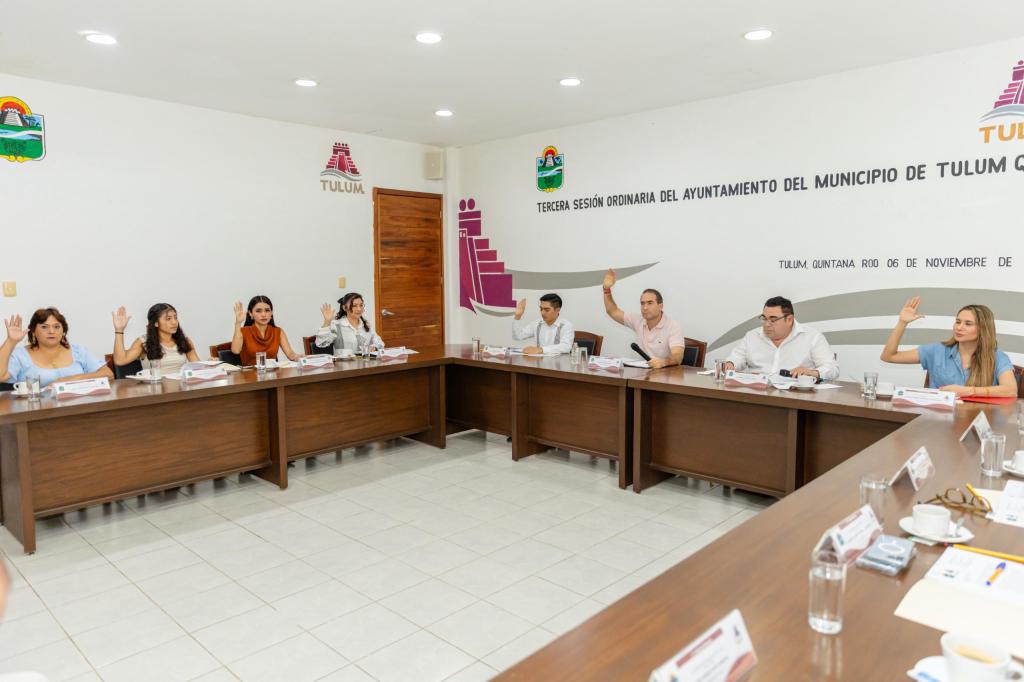 En la Tercera Sesión Ordinaria de Cabildo, el Ayuntamiento de Tulum aprobó la integración del comité de elecciones y la convocatoria para la elección de delegados y subdelegados. Asimismo, autorizó la suscripción de un convenio de coordinación con el Gobierno del Estado y la exención del pago del impuesto predial 2024 para la Fiscalía General de Quintana Roo.