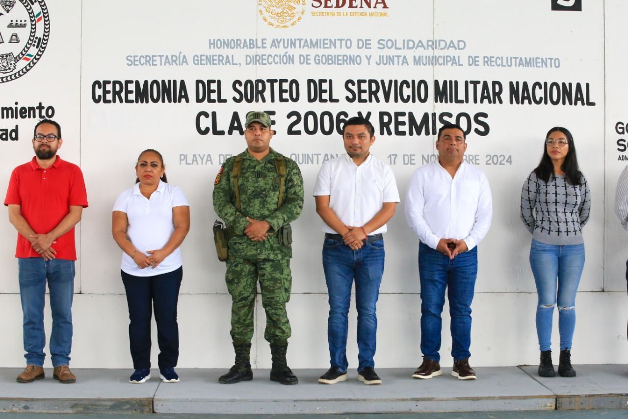 Playa del Carmen, Quintana Roo, 17 de noviembre de 2024.- Esta mañana se llevó a cabo, en el domo del parque Lázaro Cárdenas de la colonia Luis Donaldo Colosio, la ceremonia del Sorteo del Servicio Militar Nacional Clase 2006 y Remisos, en un acto coordinado entre la Secretaría de la Defensa Nacional (Sedena) y el gobierno municipal.