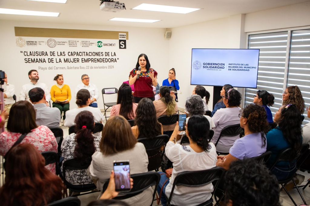 Playa del Carmen, Quintana Roo, 22 de noviembre de 2024.— La presidenta municipal Estefanía Mercado clausuró este viernes la “Semana de la Mujer Emprendedora”, marco en el que convocó a las mujeres de Solidaridad a atreverse a romper patrones de conducta y sumarse al desarrollo económico del municipio y sus familias.