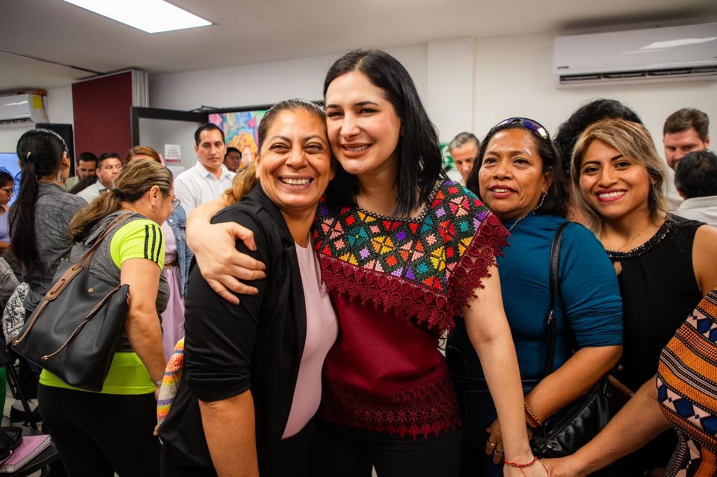 En el edificio del Instituto de las Mujeres del Municipio de Solidaridad, acompañada por Felipe López Pérez, representante de Nacional Financiera (Nafin) y del Banco Nacional de Comercio Exterior (Bancomext), Estefanía Mercado felicitó al grupo de mujeres que participó en esta capacitación, en la que aprendieron los procedimientos para ser dueñas de sus propios negocios.