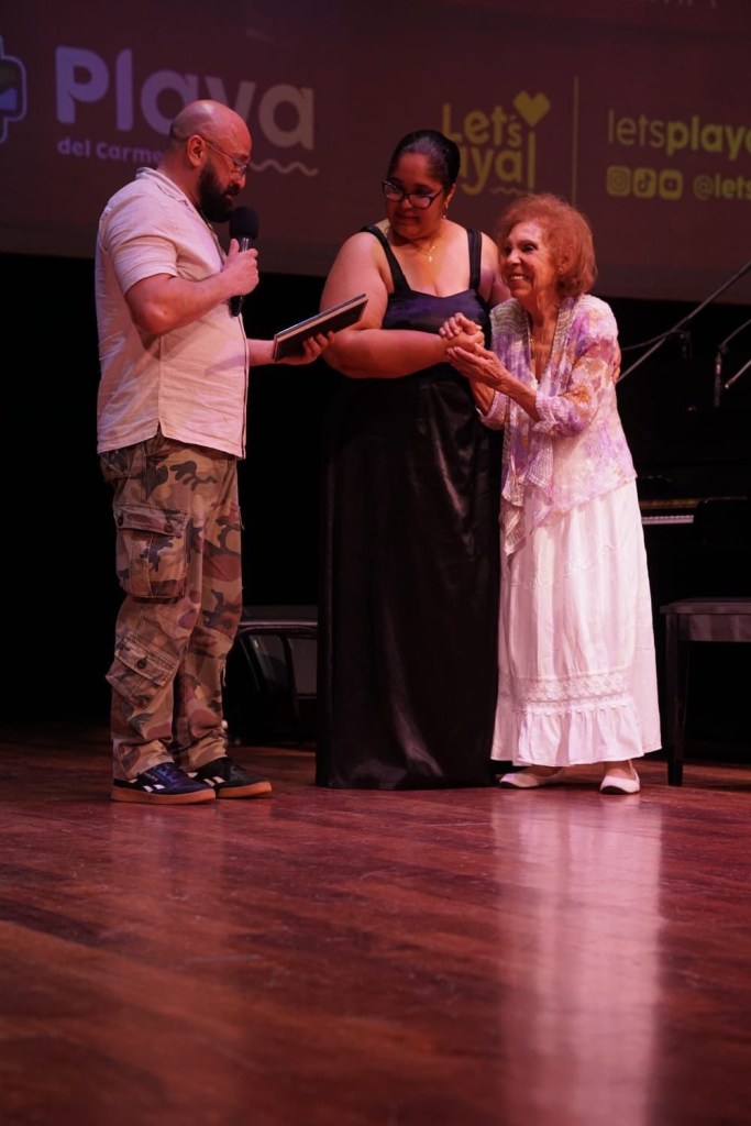 El momento culminante de su actuación llegó cuando el público se puso de pie para ovacionarla. Santiago Ernesto Martínez Cuéllar, director general del IMCAS, expresó: “Gracias por todo y por tanto. Gracias por tocarnos el alma”, al entregarle un reconocimiento en nombre de la presidenta municipal.