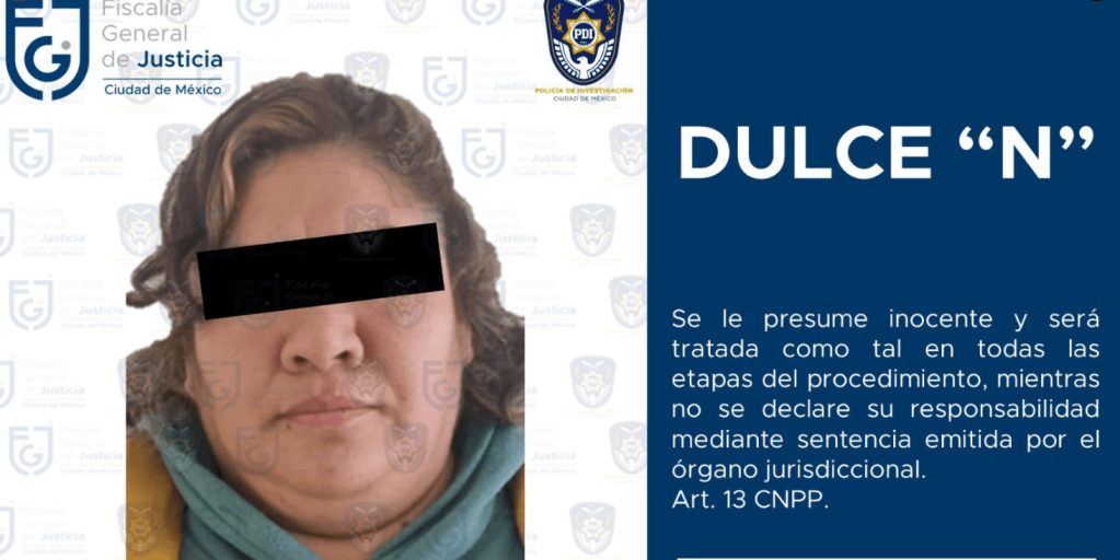 Agentes de la Fiscalía General de Justicia de la Ciudad de México (FGJCDMX) detuvieron a Dulce ‘N’ por su presunta participación en el delito de violación equiparada en agravio de dos hombres. Según las investigaciones, los abusos habrían ocurrido al menos cuatro veces entre enero y abril de 2024 en un inmueble de la colonia Villa Quietud, en la alcaldía Coyoacán.