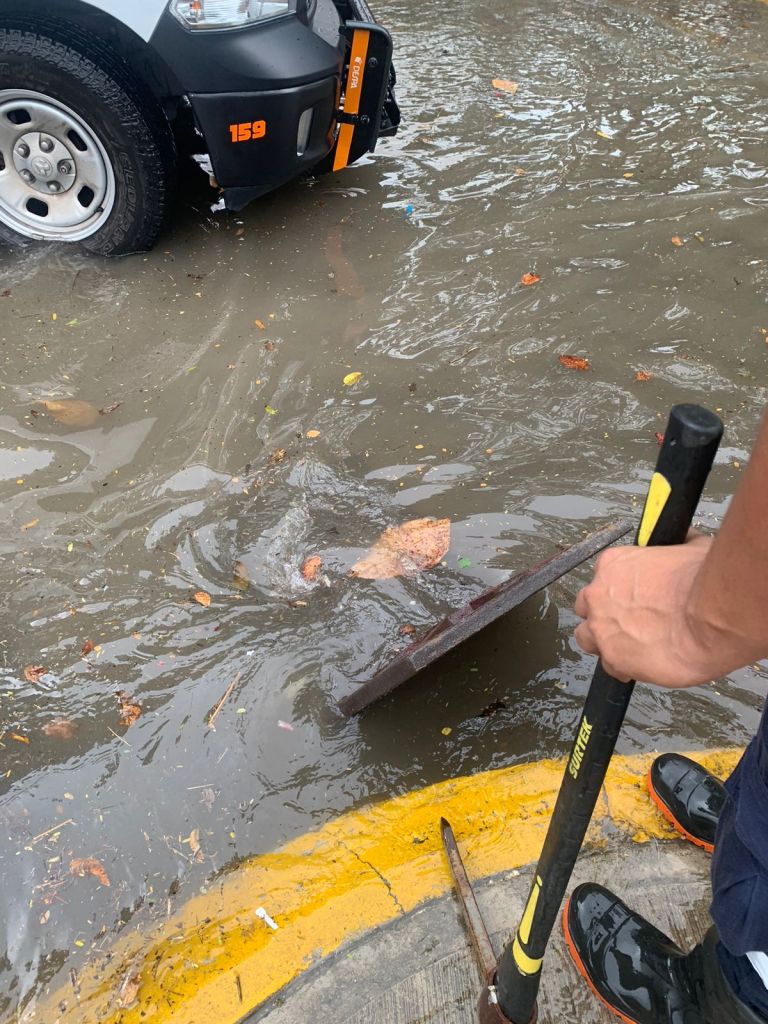Julieta Martín Azueta, secretaria de Servicios Públicos Municipales, informó que se desplegaron cinco brigadas equipadas para la limpieza de alcantarillas, lo que permitió el flujo inmediato del agua y evitó inundaciones severas.