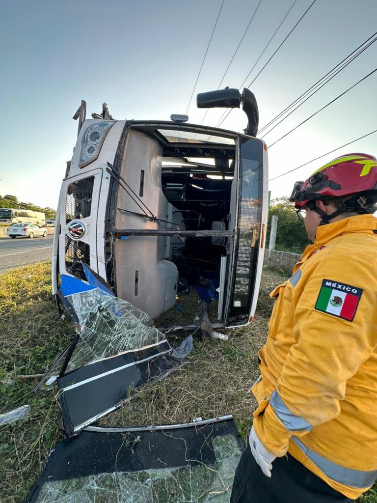 La tarde de este sábado 8 de febrero de 2025, un autobús de transporte de personal volcó en la carretera federal 307, a la altura de Puerto Aventuras, cuando circulaba con dirección a Playa del Carmen.