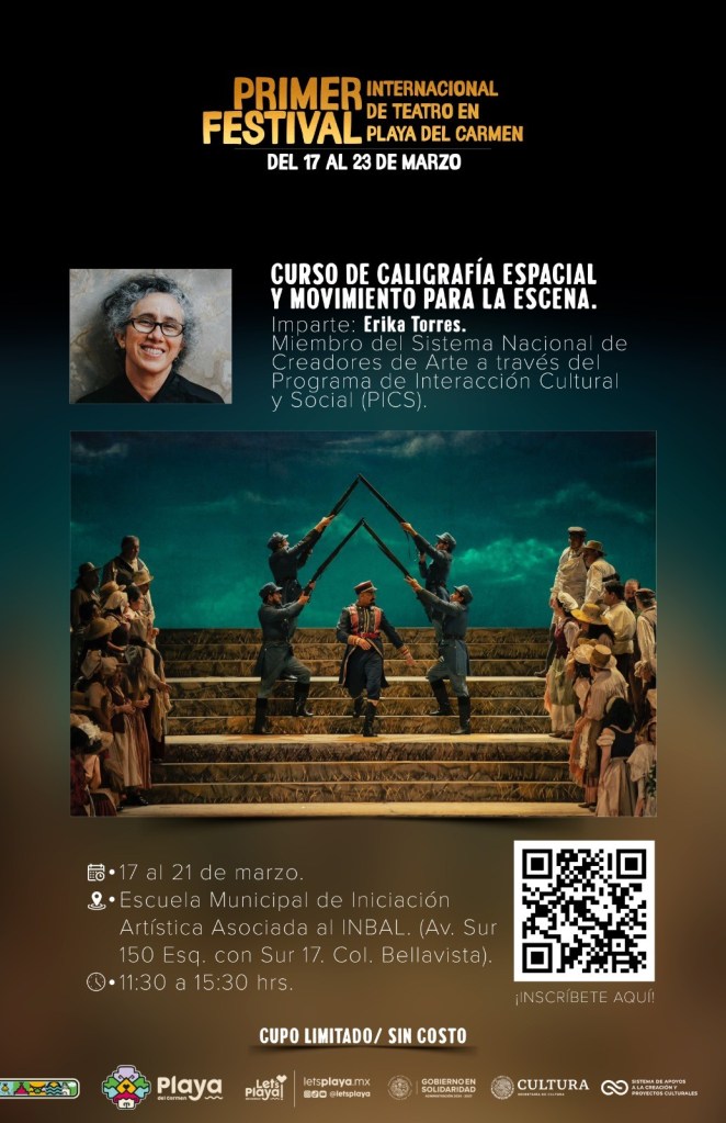 El Primer Festival Internacional de Teatro de Playa del Carmen ofrecerá una serie de cursos y talleres dirigidos a directores teatrales, coreógrafos, actores, bailarines, mimos y clowns, con la participación de destacados profesores del Sistema Nacional de Creadores.