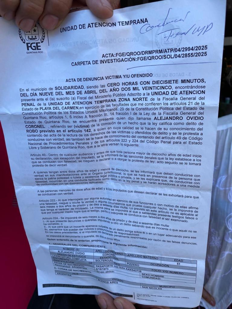 “Desde que llegamos todo fue decepción. Lo que contratamos no coincidía con lo que encontramos, pero jamás imaginamos que terminaríamos siendo robados dentro del hotel”, declaró Coronel, oriundo de San Nicolás, Buenos Aires. “Primero faltaron algunas prendas, luego 300 dólares… al final, cuando revisamos la caja fuerte, ya no había nada. Nos dejaron sin nada, ni para tomar agua”, denunció.